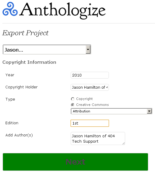 You’ll get to set a few details before the project is compiled like year, copyright info, edition, and other authors.