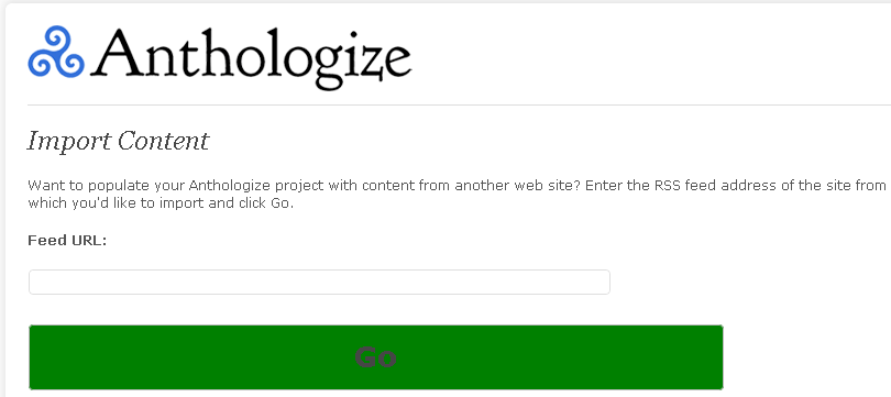 You can also import content from an RSS feed. You’ll find this option on the left column Anthologize sub-section.