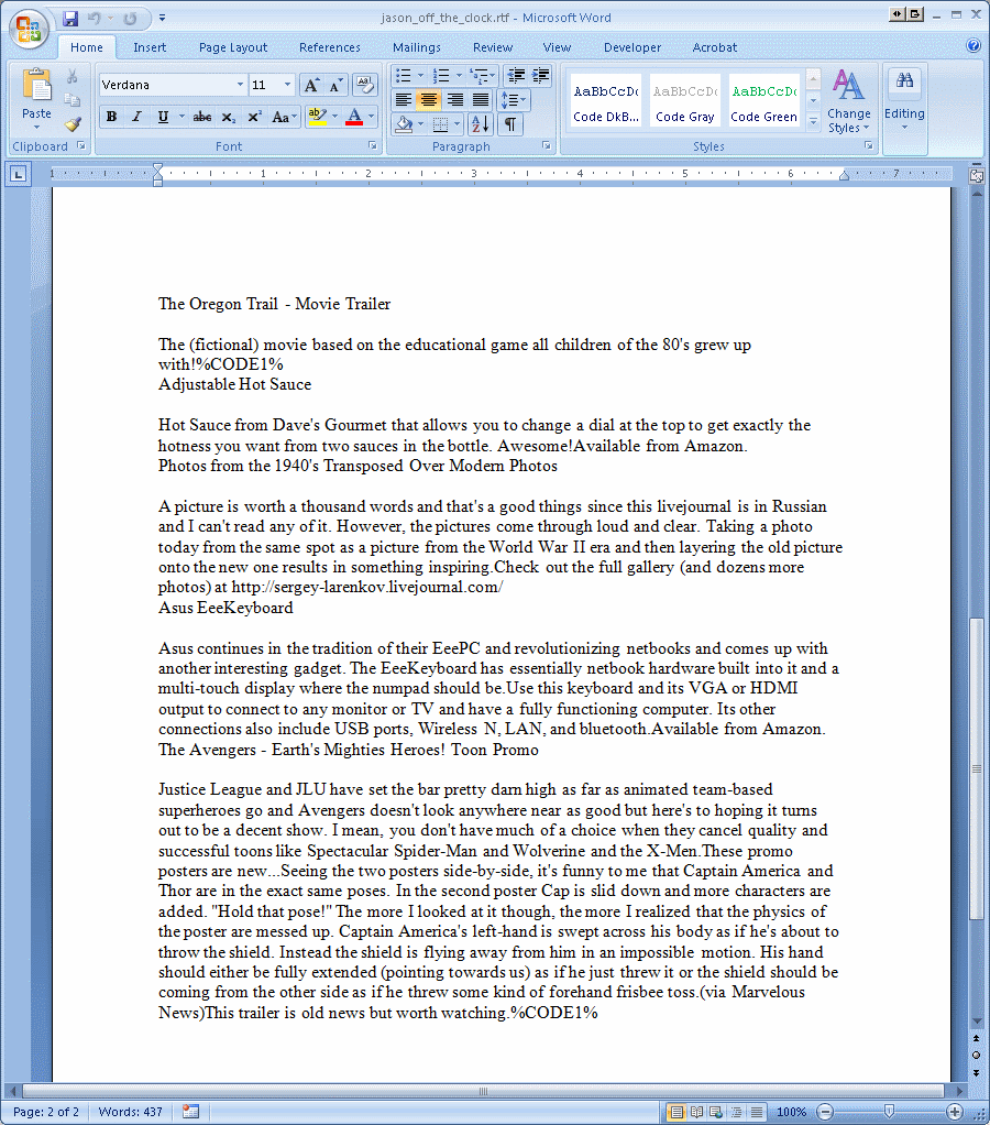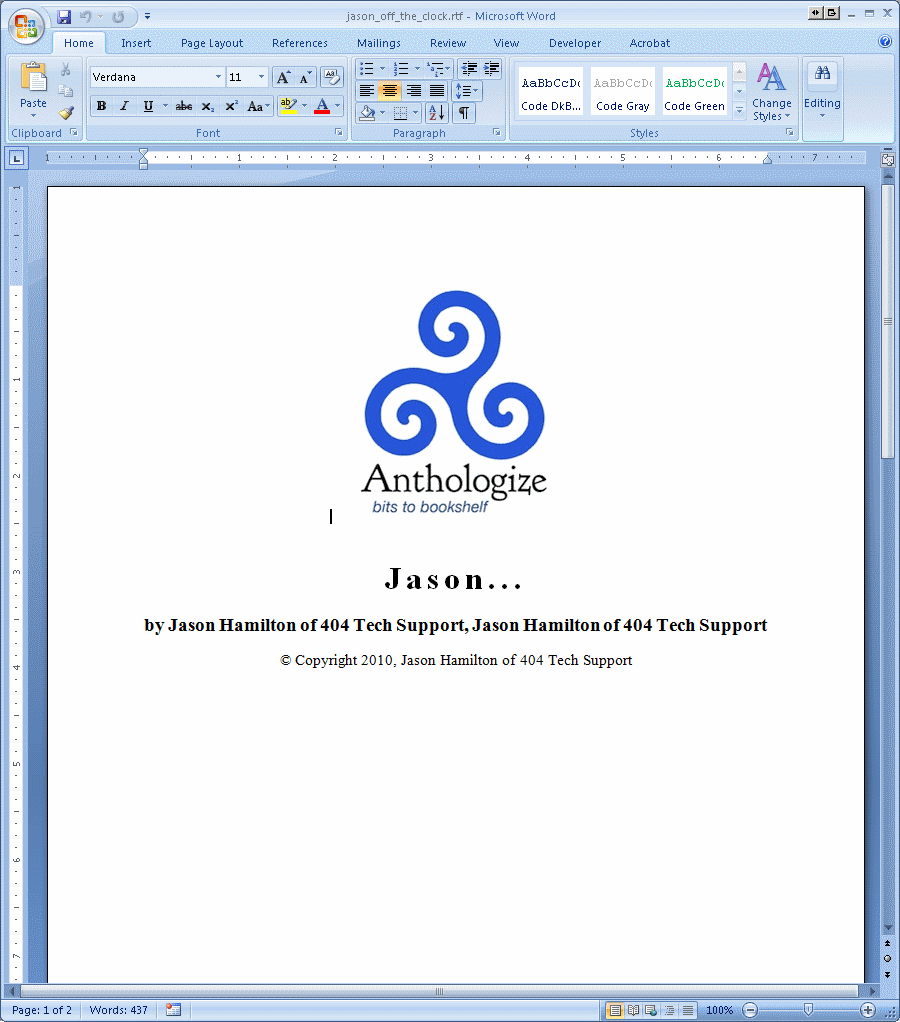 Here’s page one of the project exported to RTF…